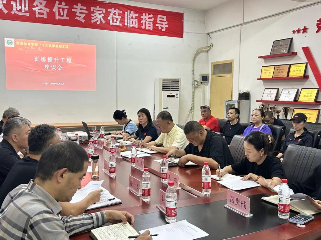 会议由竞赛训练处处长许伟主持,各相关部门负责人及竞校全体人员参加了此次座谈会。会议首先由竞技体校校长张朝阳就第十五届全运会备战情况进行了汇报,他从备战的目标任务、重点队员备战训练情况以及存在的问题与需求等七各方面做了汇报。所有与会人员进行了交流发言,根据与会教练员们提出问题,相关职能部门负责人一一进行了解答,并提出了解决办法。大家认为,备战十五运是我们当前竞赛训练的主要工作,要集中精力,刻苦训练,要争取取得最优成绩,为学校争光添彩;会议强调,竞技体育是我们办学的门面,要鼓足干劲,发扬体育精神,高站位,多谋划、科学布局各个项目,进行错位、补位发展,为陕西体育做贡献,为体育强国建设展现西体智慧。