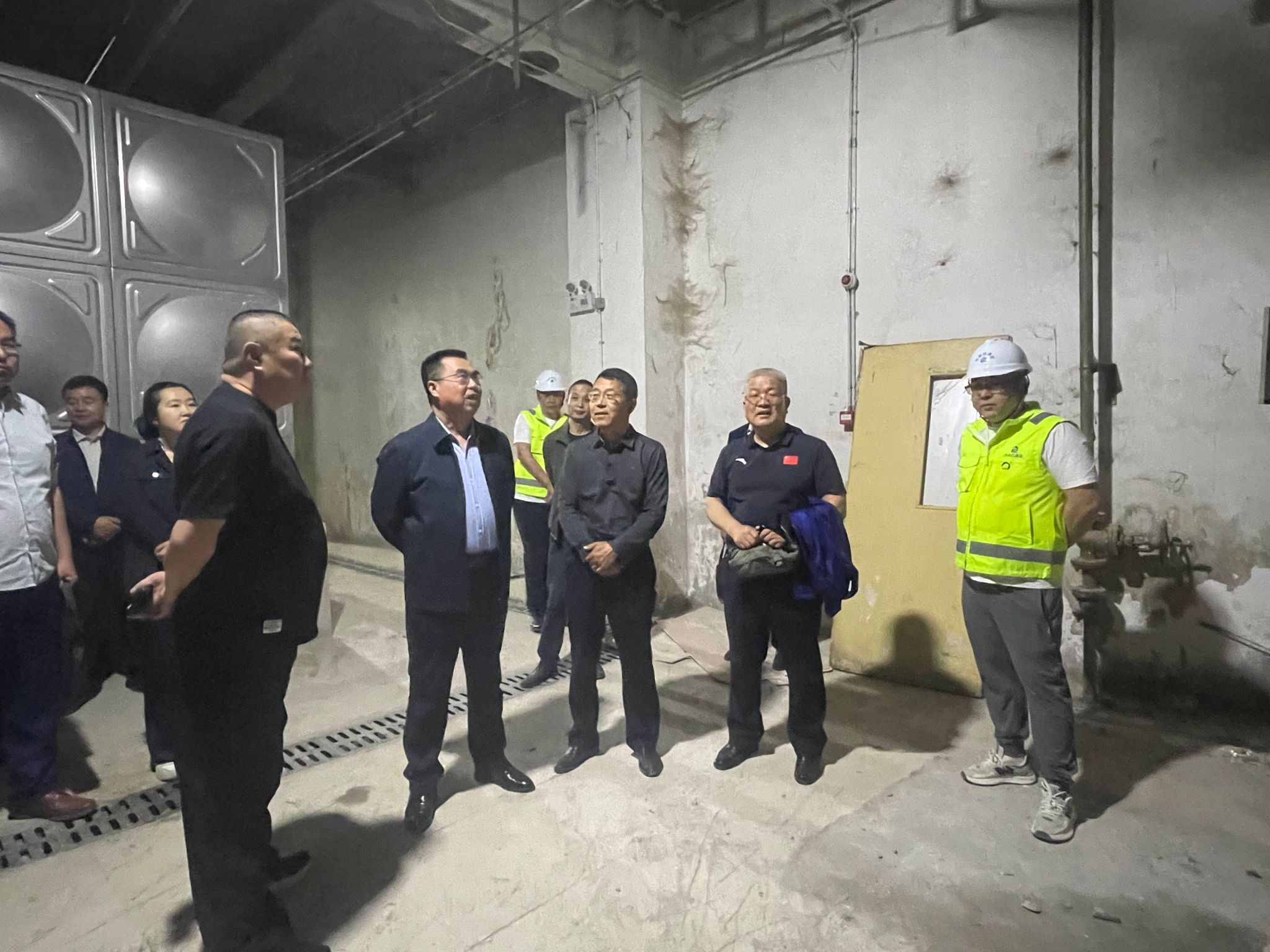 校领导一行先后查看了含光校区4号学生公寓消防施工现场、正在实施危楼加固的部分楼宇和鄠邑校区综合训练馆、人防工程等,并对鄠邑校区动力中心的消防水泵、生活用水、供电供气设备及假期值班值守情况进行了深入检查。